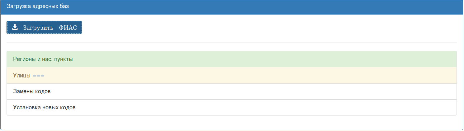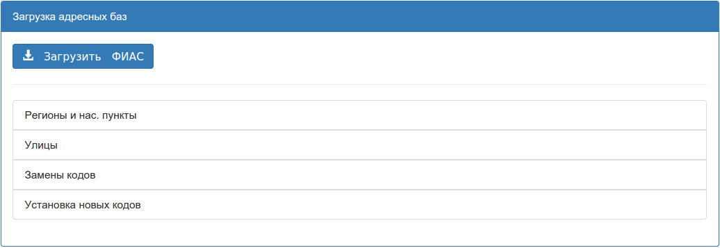 Меню: Администратор → Настройка системы → Загрузка адресных баз