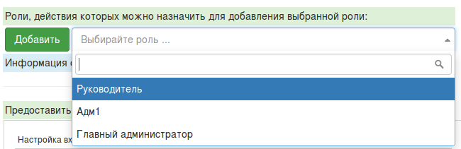 Если Вы хотите добавить уже готовые роли, то в выпадающем списке необходимо выбрать нужную роль.