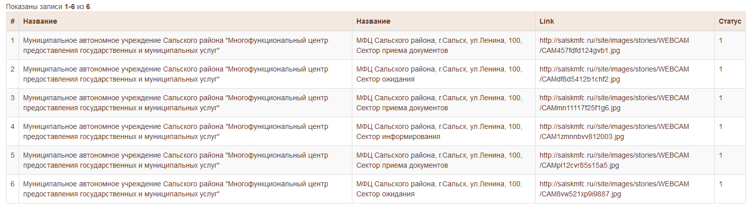 В данной форме есть колонки с текстовой информацией, а так же колонки со ссылками, например "Адрес МФЦ" содержит адрес внешнего портала МФЦ, при нажатии на который произойдет переход на внешний сайт выбранного МФЦ.
