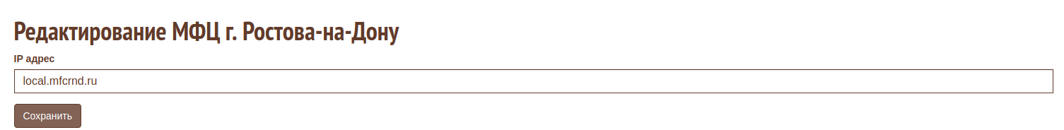 Можно отредактировать URL адрес мфц по которому идет обращение к конкретному МФЦ для сбора информации. Теперь адрес не будет автоматически обновляться при обновлении информации об МФЦ через центральный портал.