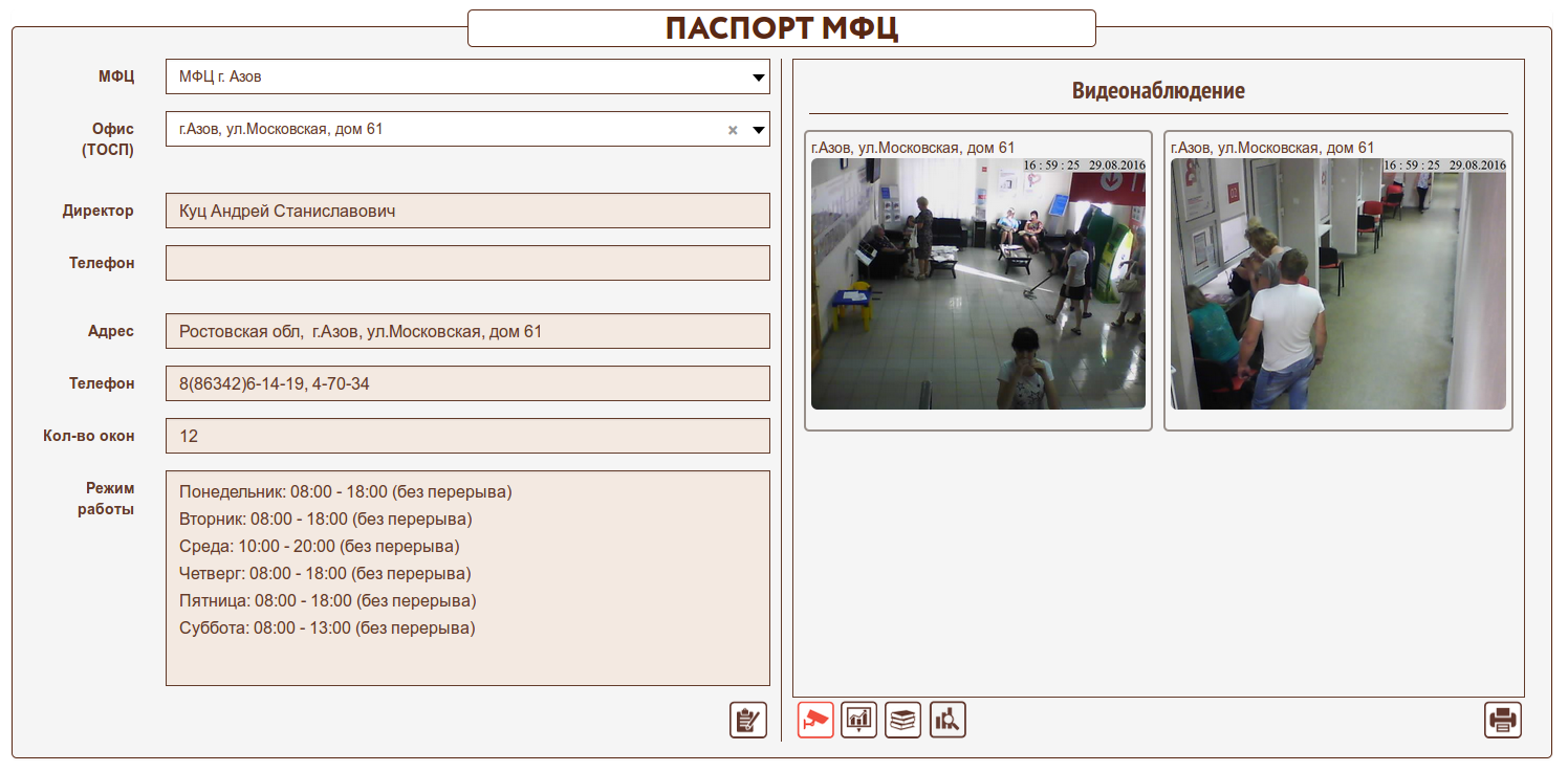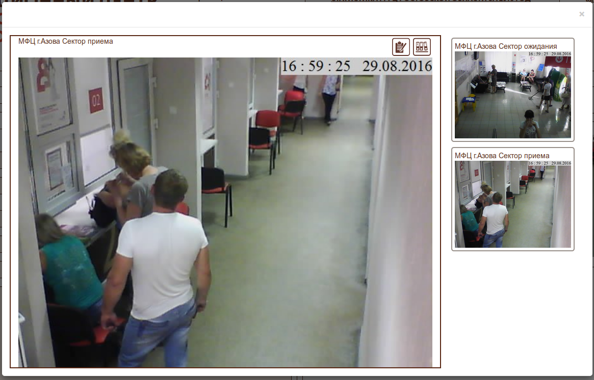 Панель видеонаблюдения позволяет просмотреть камеры с мфц в реальном режиме. Каждую камеру можно увеличить (нажав на изображение)