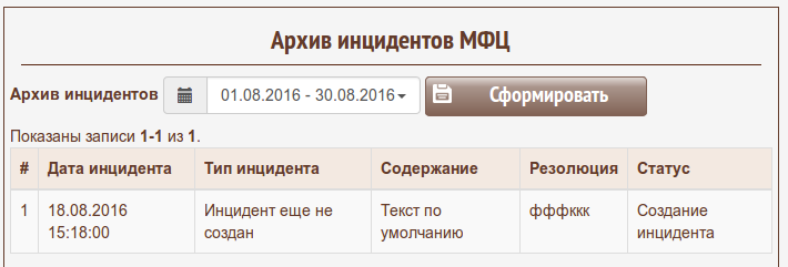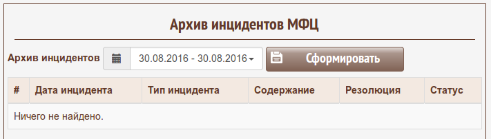 Для просмотра архива инцидентов необходимо указать период за который необходим отчет.