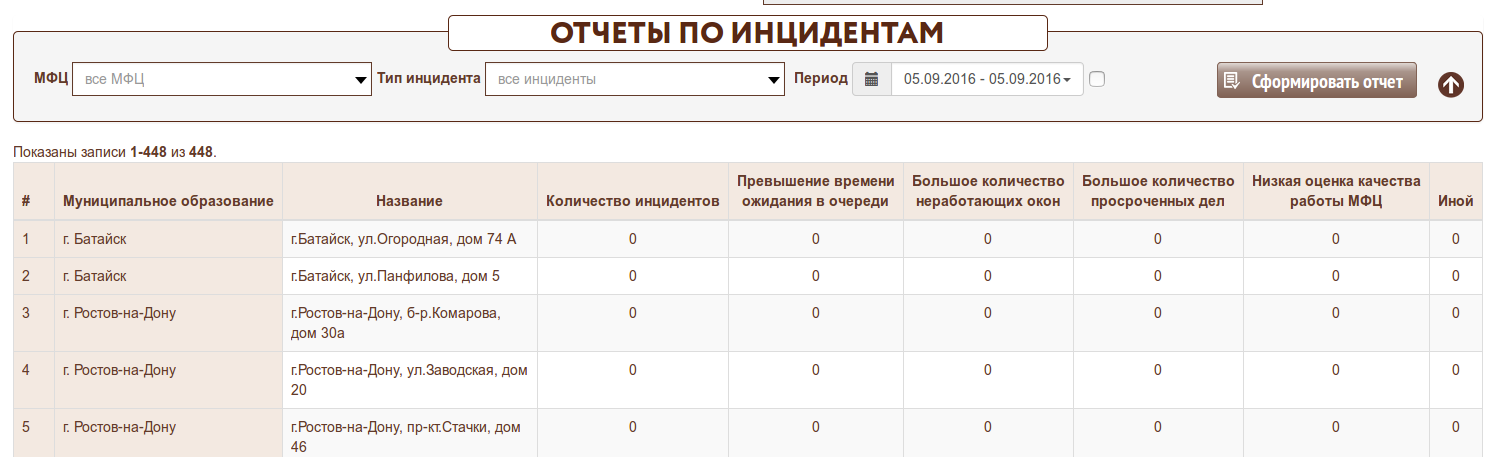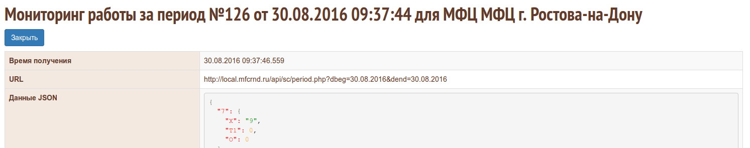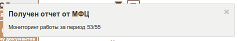 Отчет будет опрашивать не ответившие МФЦ пока не получет ответ. Если в данный момент сайт МФЦ не доступен, то результат придет как только МФЦ появится в доступе. Если это произойдет когда оператор уже уйдет со страницы просмотра отчета ему будет выведено информационное сообщение о получение отчета от нового МФЦ.